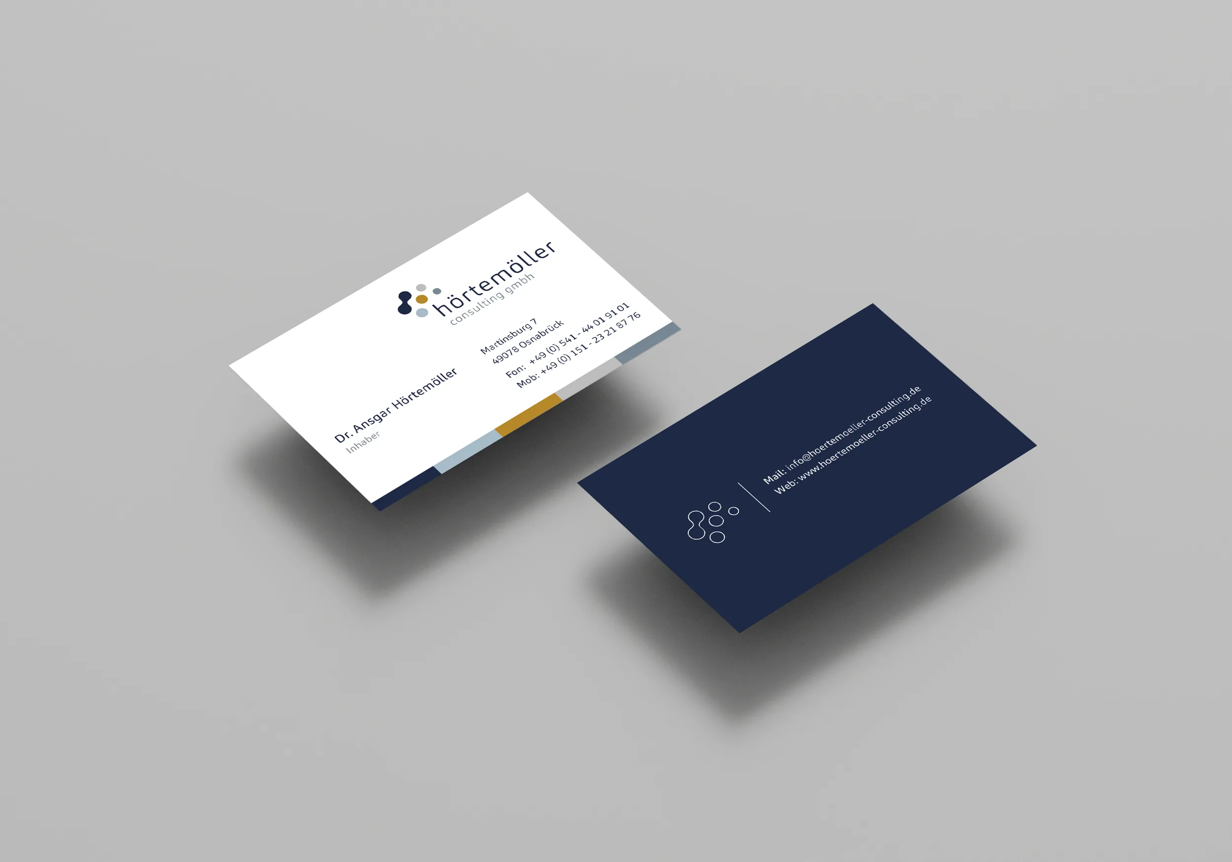 Die hörtemöller consulting gmbh beauftragte uns mit der Entwicklung eines neuen Corporate Designs mit Logo, Geschäftsausstattung und vielem mehr.
